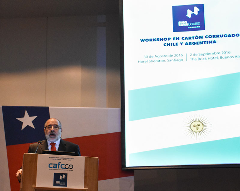 Uno de nuestros socios en la inauguración de un evento binacional co-producido con la Cámara Argentina de Corrugado CAFCCO en 2016